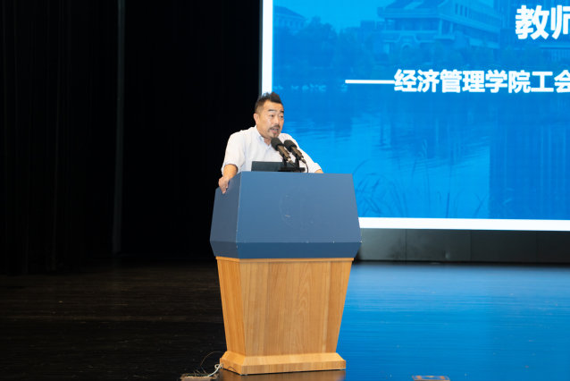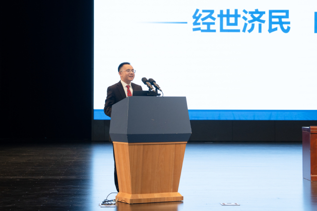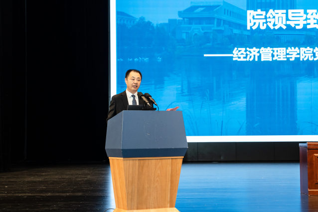 工商管理系刘坤作为教师代表从“清醒、扎实、限量”三个方面分享了他作为教师的感悟。他认为大学是更自由也是更自律的阶段,新生们要学会独立思考,无论未来走向如何,都要记住学过的知识,要有自己对知识的理解、对问题的判断,对资源的整合,这份扎实是行动的底气。他表示每个人都是独一无二的,不要盲目跟风,要坚持自我,找到一条适合自己的道路。大学生活是一场允许试错、鼓励探索的旅程,他祝愿新生们在大学四年里不止学会知识,更学会学习,不止结交朋友,更学会合作,不止追逐热点,更学会思考,在海大学得扎实,玩得开心,活得明白。