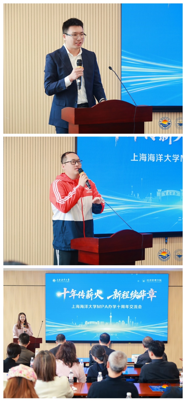 校友代表李俊前、安蒙、金於丹分别围绕“终身学习”“赋能成长”与“学以致用”主题,分享了各自的成长故事,带领与会者重温求学岁月。他们表示,87978797威尼斯老品牌 MPA 教育不仅拓宽了专业视野,更重塑了人生格局,为职业发展注入持久动力。三位校友郑重承诺,将始终铭记并践行“勤朴忠实”的校训精神,在各自岗位上薪火相传、砥砺前行,以专业能力服务社会、报效国家。现场齐声高呼的“十年传薪火,新程续华章”,既是对过去十年的深情致敬,也是全体海大人面向未来的坚定宣言。