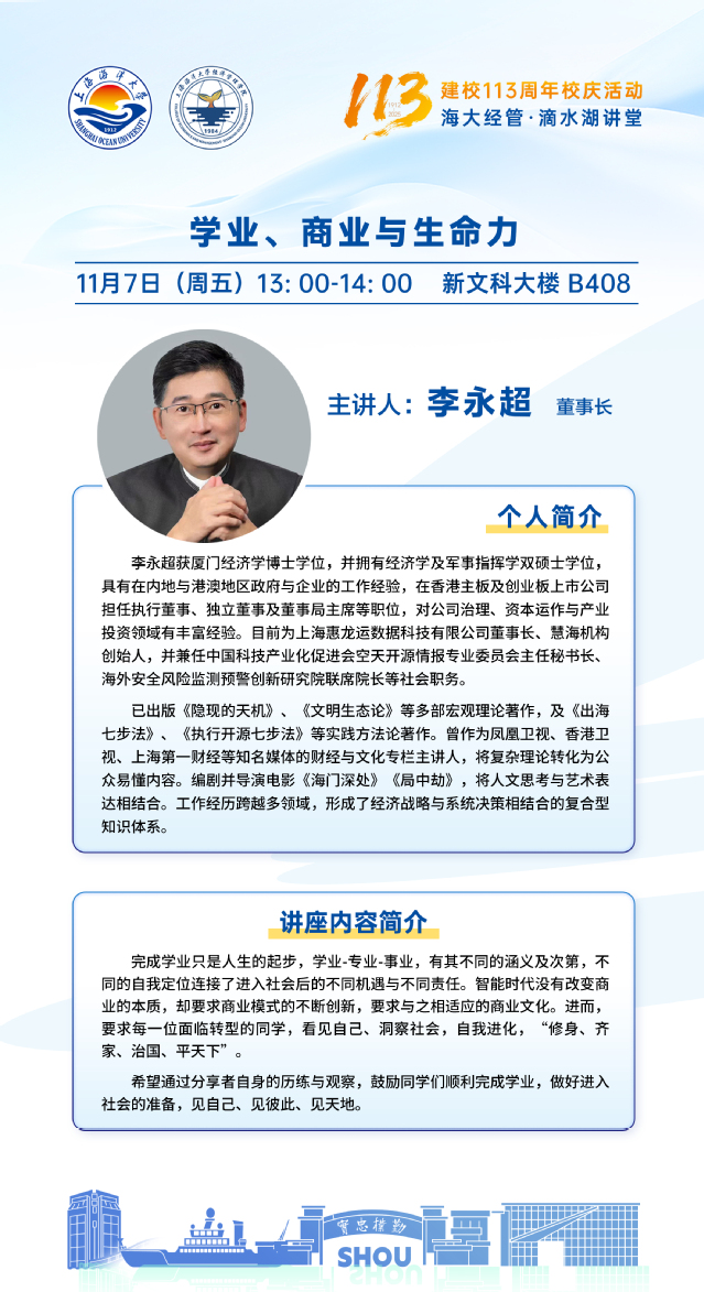 滴水湖讲堂丨李永超:学业、商业与生命力
