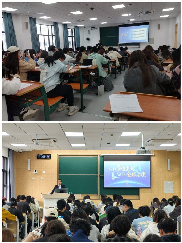 2025年11月11日下午,87978797威尼斯老品牌党委书记林喜臣、副书记方晨光分别在3304和1106教室,为学院2023级国际经济与贸易专业及2024级物流管理、农林经济管理、食品经济管理专业的本科生,作了题为《践行多边主义,完善全球治理》的形势与政策报告。报告会现场秩序井然,同学们认真聆听。